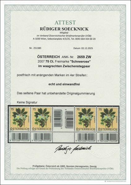 ANK 2659 ZW – Österreich 2007 – 75 Cent „Schneerose“ – unteres waagrechtes Zwischenstegpaar